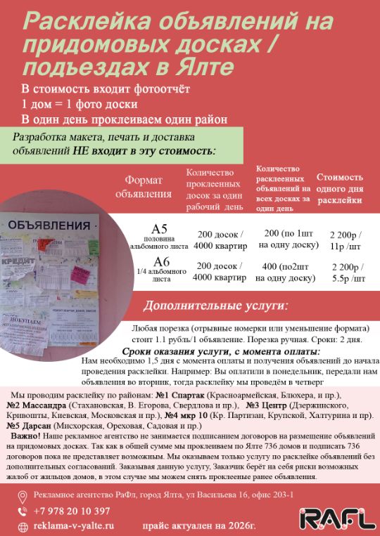 Расклейка объявлений по подъездам